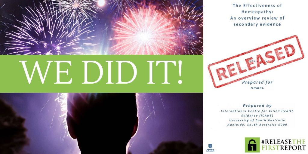 Az NHMRC (ausztrál Nemzeti Egészségügyi és Orvosi Kutatási Tanács) végre nyilvánosságra hozta az első homeopátiáról szóló jelentését, miután ennek érdekében nemzetközi kampány indult Release The First Report néven.